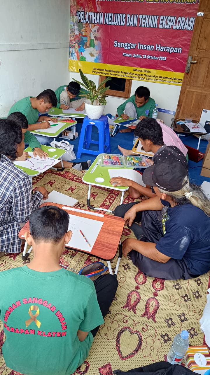 Rangkaian kegiatan berlangsung sejak Oktober hingga November 2025 dengan dua agenda utama, yakni Workshop Melukis Inklusif dan Pelatihan Membatik Ciprat. Program ini menjadi bagian dari implementasi hibah pengabdian masyarakat yang didanai DPPM Dikti melalui PISN 2025, bertajuk “Inovasi Seni untuk Sanggar Insan Harapan dalam Penguatan Identitas Sosial Difabel melalui Festival Seni dan Budaya Disabilitas Klaten 2025.”